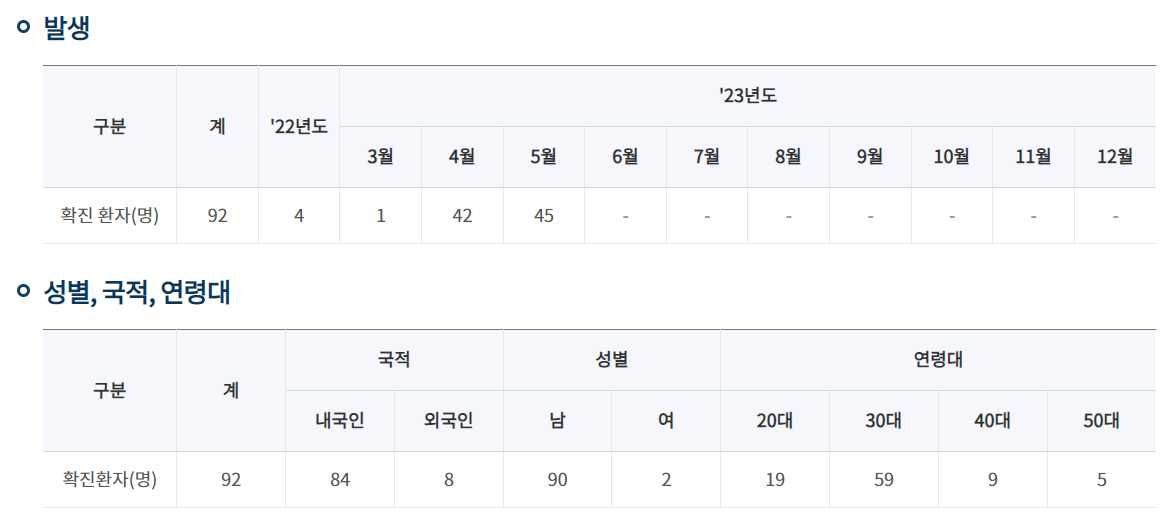 엠폭스 확진자 : 23.6.1.0시 기준 업데이트