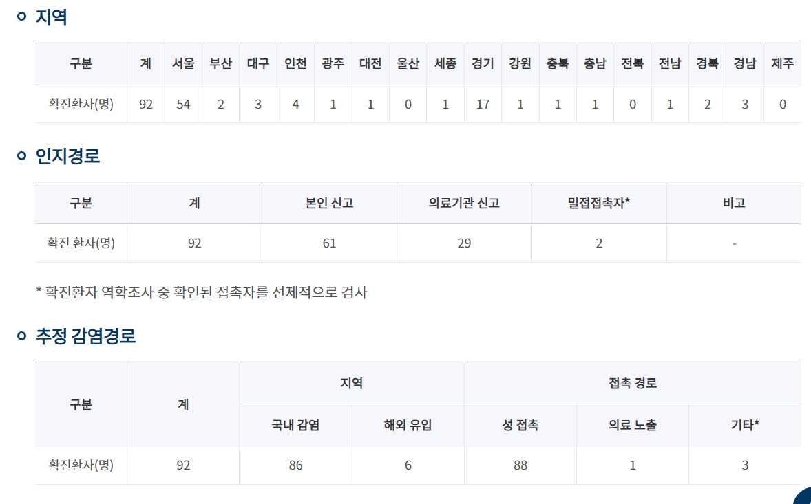 4월 누적 29명 국내 감영이 확인되었으며 증상은 약하다고 발표하였습니다. 내국인 27명, 외국인이 2명으로 서울 13명, 경기 7명, 경남 3명, 경북 2명, 경북 2명, 대구 2명, 전남 1명, 충북 1명 등입니다. 질병관리청에 따르면 28명은 해외여행력이 없었으며, 1명은 해외여행 이력이 있었으나 증상 발현과는 무관한 곳이었다고 합니다. 모두 국내 지역사회 감염자로 보고 있습니다.